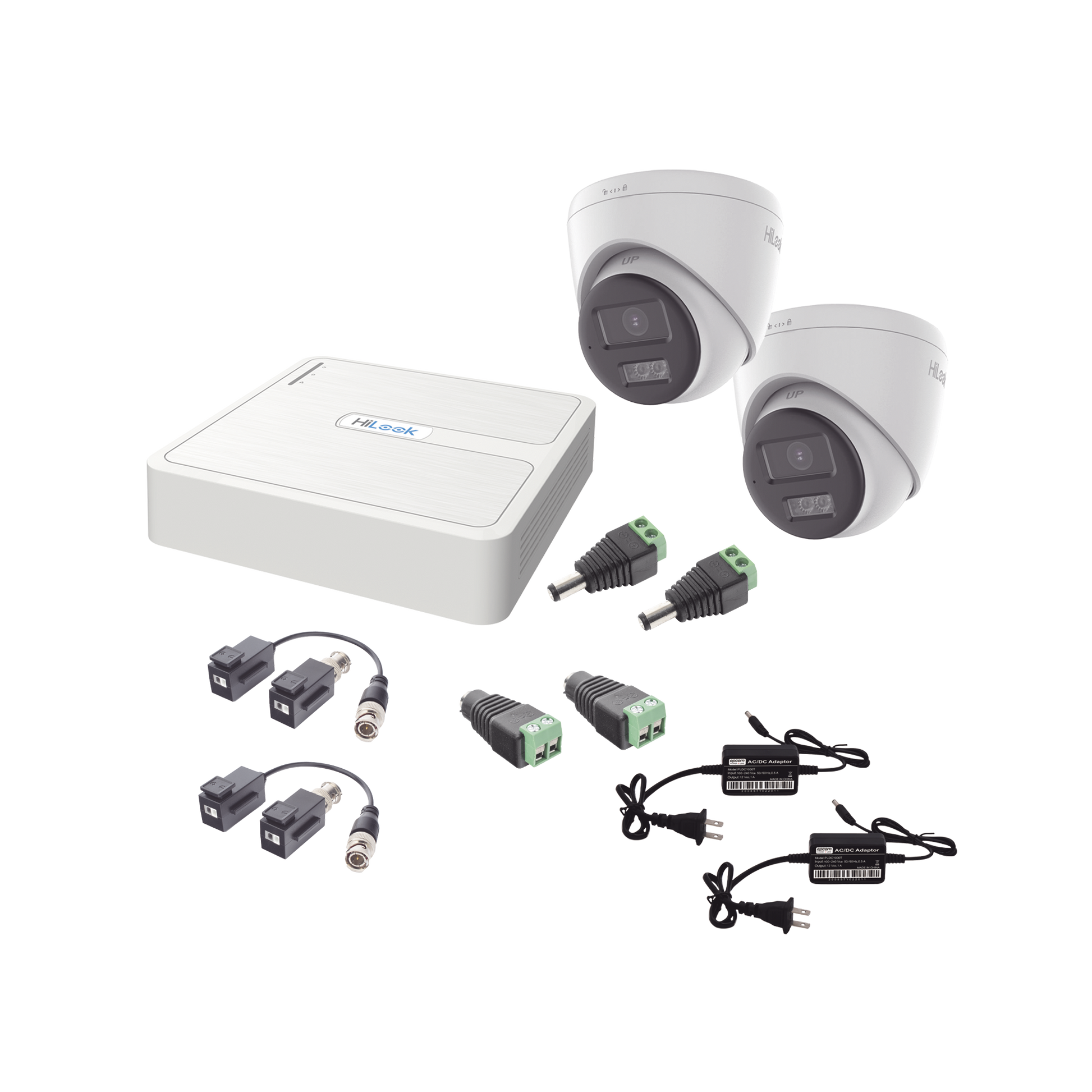 Kit HiLook Audio Bidireccional TurboHD 1080p / DVR 4 Canales / 2 Cámaras Turret (Exterior) con Bocina y Microfóno Integrado / 2 Fuentes de Poder / Accesorios