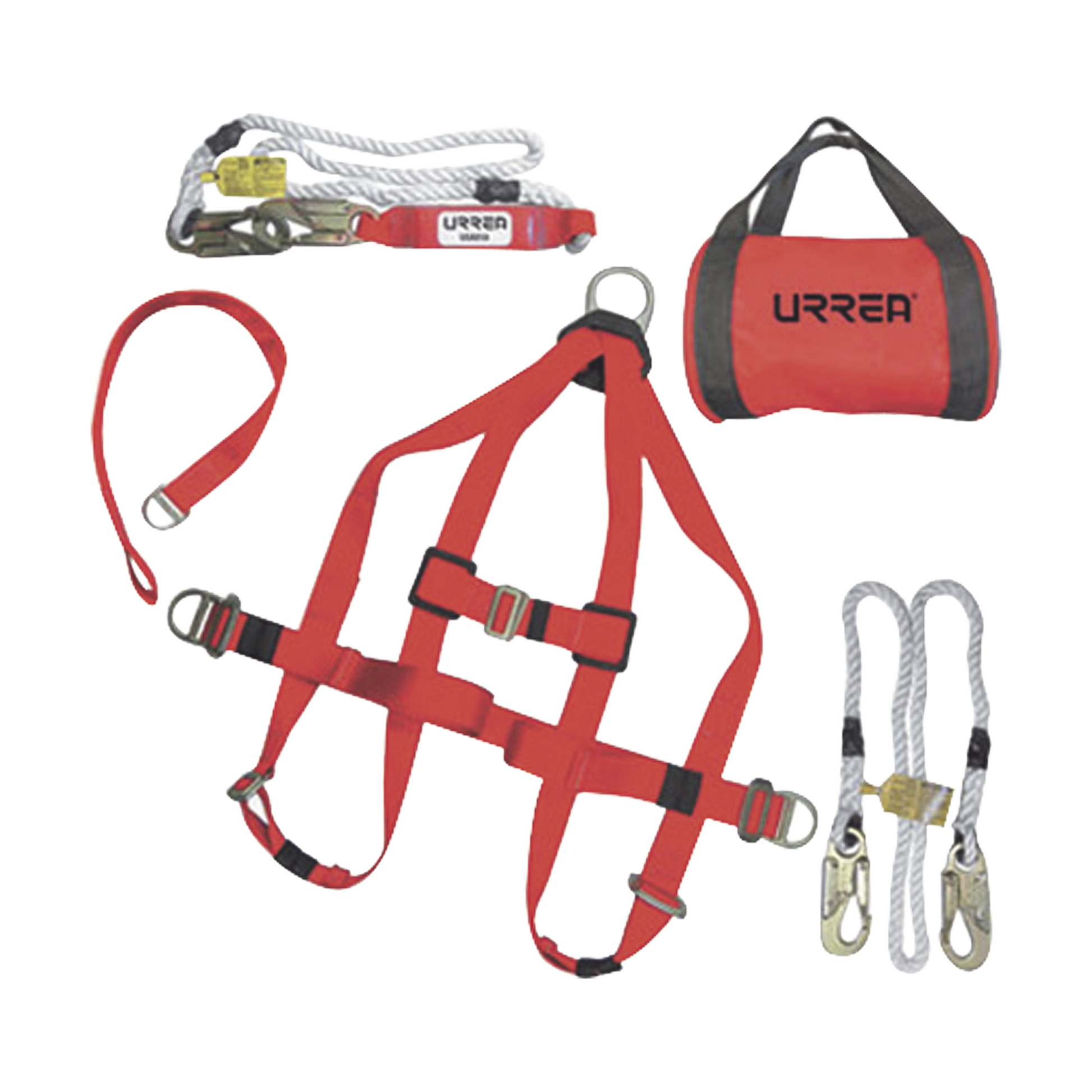 - Este kit de arnés se caracteriza por tener dos anillos en laterales y un anillo en la espalda, un cable amortiguador de impacto que disipa la energía acumulada en la caída, un cable de nylon trenzado para posicionamiento y un anclaje para conectar las líneas o accesorios que atan al equipo del trabajador.